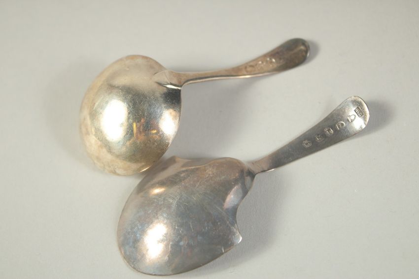 TWO GEORGIAN SILVER CADDY SPOONS.