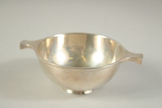 A WALKER AND HALL SILVER CIRCULAR QUAICH.