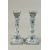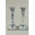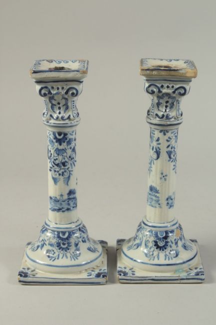 A PAIR OF DUTCH BLUE AND WHITE CANDLESTICKS on square bases.