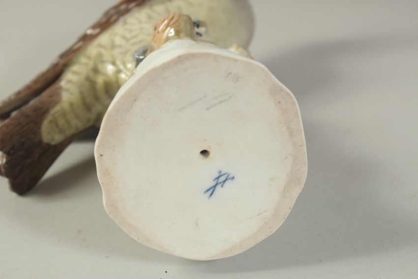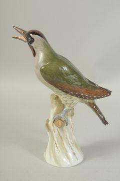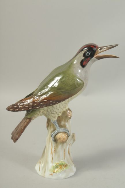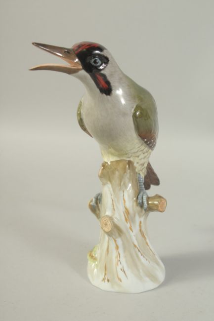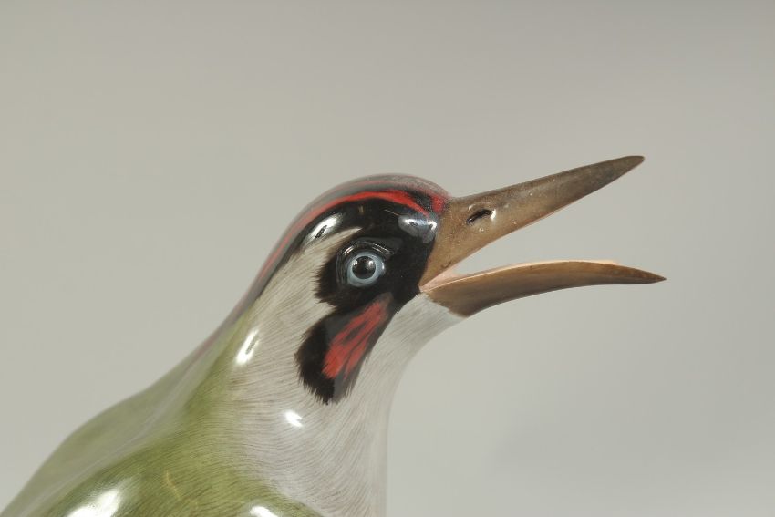 A MEISSEN GREEN WOODPECKER first modelled by Joachim Kaendler. Circa. 1880.