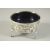 A GOOD LARGE SILVER CIRCULAR SALT with sapphire blue liner repousse side with cupids, supported on four pad feet.