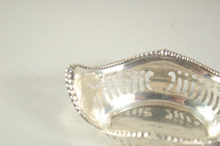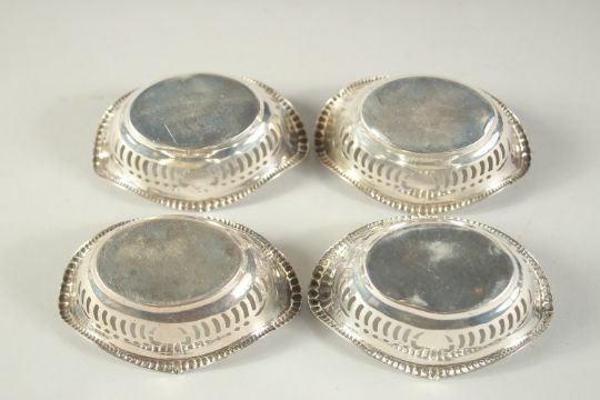 A SET OF FOUR OVAL PIERCED SILVER BON BON DISHES.