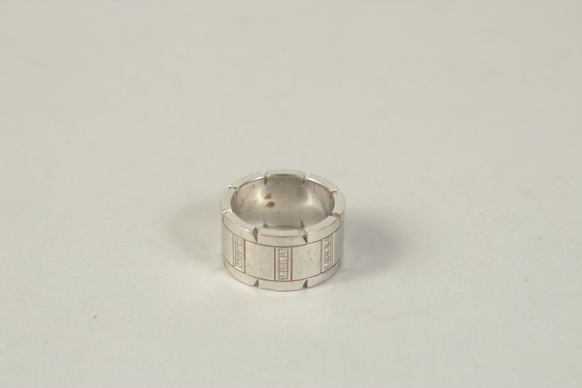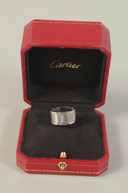 AN 18CT GOLD AND DIAMOND SET CARTIER TANK FRANCAISE RING, in original box.