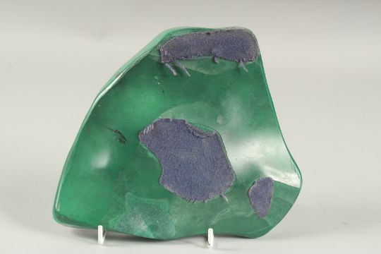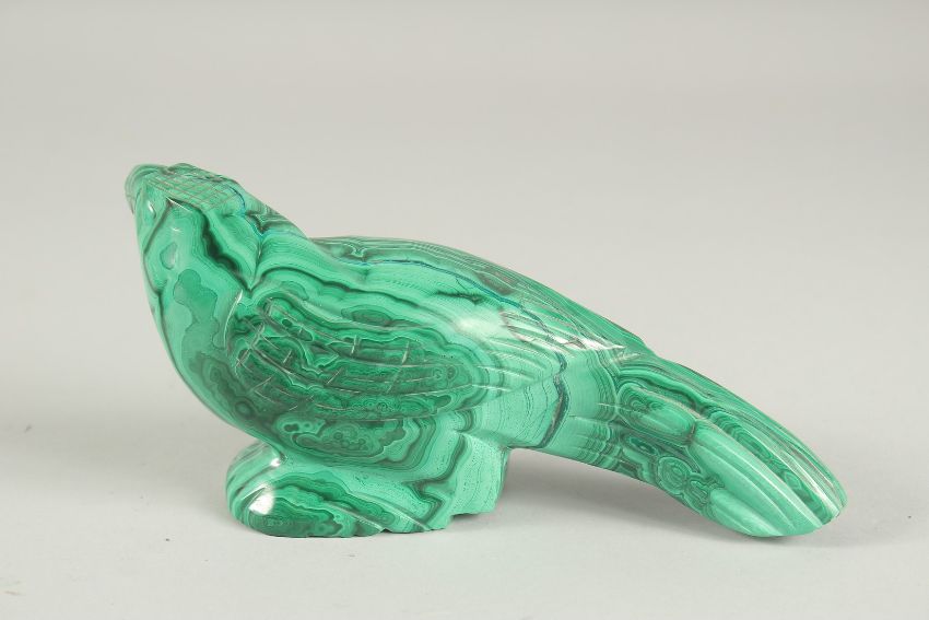 A CARVED MALACHITE BIRD. 7ins long and an Ashtray, 7ins diameter. (2).