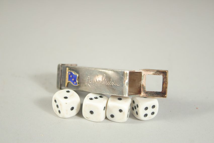 2ins long. Birmingham 1890. Maker: C.C. and a set of four dice in a plated case.