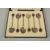 A SET OF SIX BEAN END COFFEE SPOONS with enamel bowls, cased.