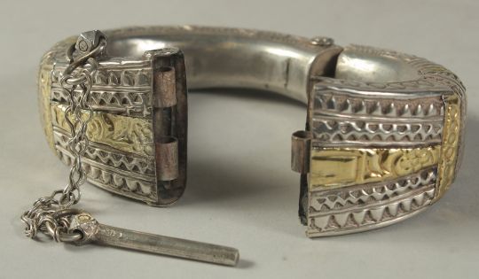 AN OMANI MUTTRAH MUSCAT BALOUCH GOLD OVERLAID SILVER BRACELET.