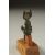 A RARE ANCIENT EYGPTIAN BRONZE FIGURE OF ISIS NURTURING HORUS, on a wooden stand, bronze 12cm high.