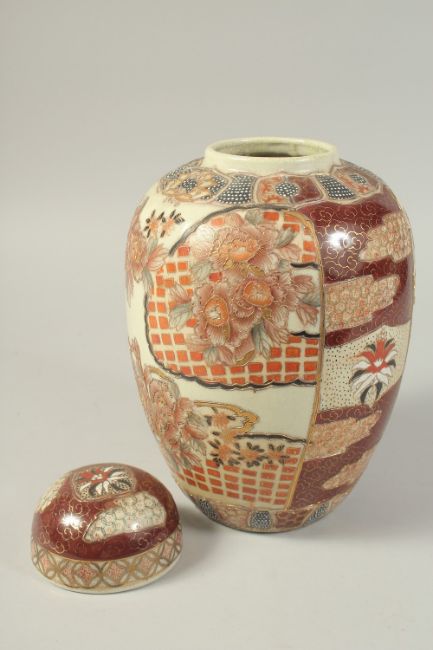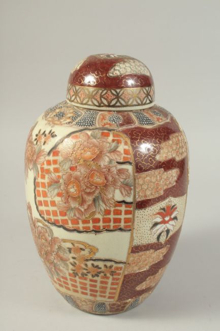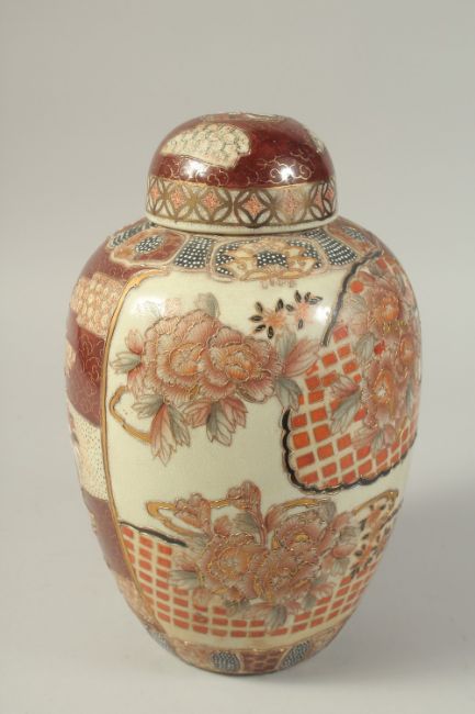 A JAPANESE SATSUMA-TYPE PORCELAIN JAR AND COVER, decorated with flora and gilded highlights, 31cm high.