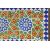 A FINE LARGE 19TH CENTURY INDIAN GLAZED POTTERY TILED PANEL, inset within a wooden frame; possibly a table top, 88cm x 54.5cm overall.