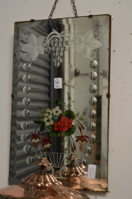 A pair of decorative etched and painted mirrors initialed J M J.