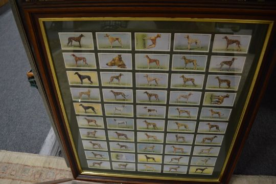 A collection of cigarette cards, framed and glazed.