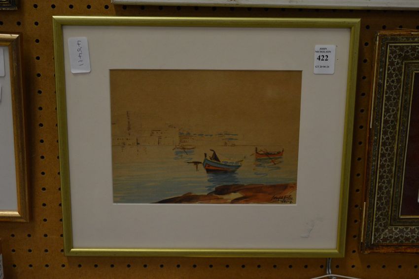 Maltese coastal landscape, watercolour, signed.