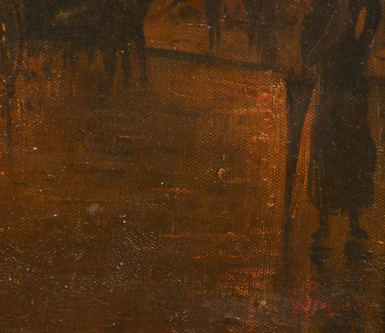 English School, Circa 1900, a view of Leeds at dusk, oil on canvas, indistinctly signed, 14" x 20" (36 x 51cm).