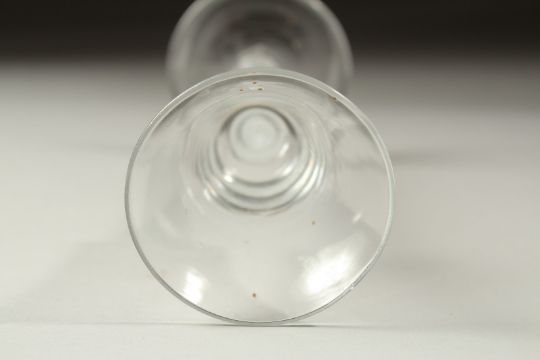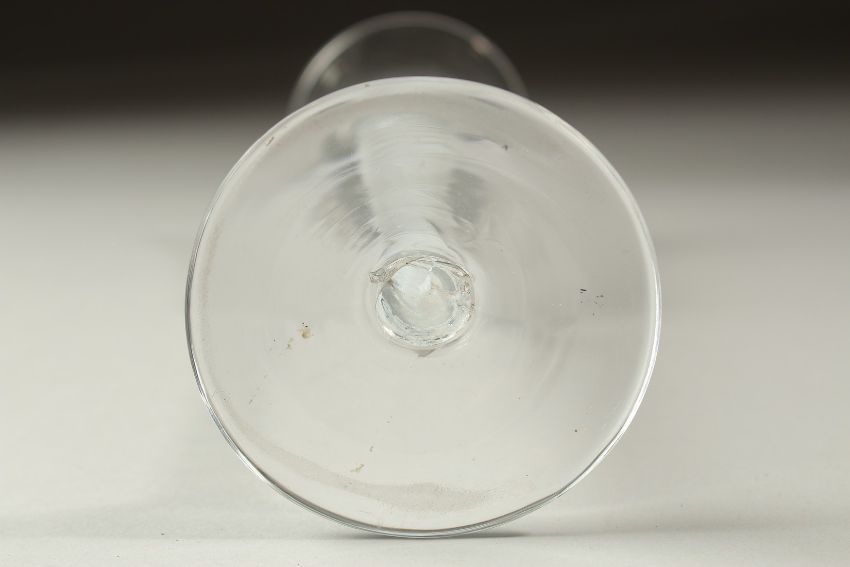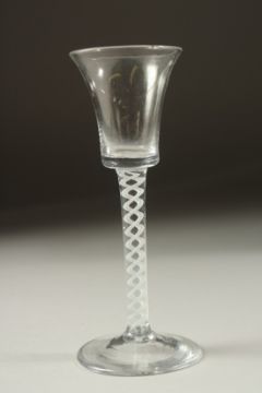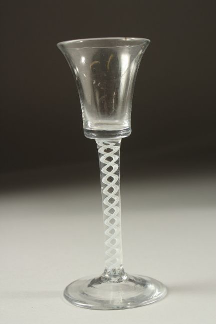 A GEORGIAN WINE GLASS with white opaque twist stem.