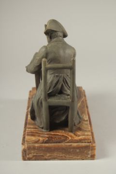 NAPOLEON SITTING AT A TABLE, spelter on an onyx base.