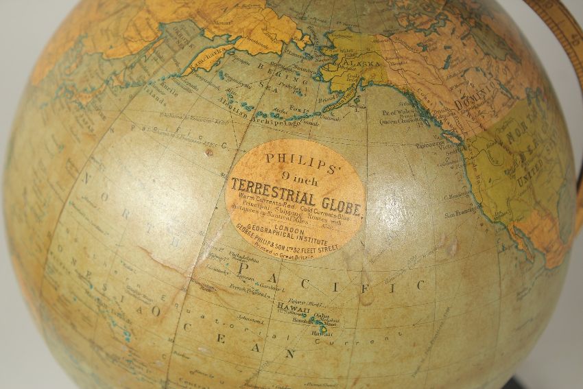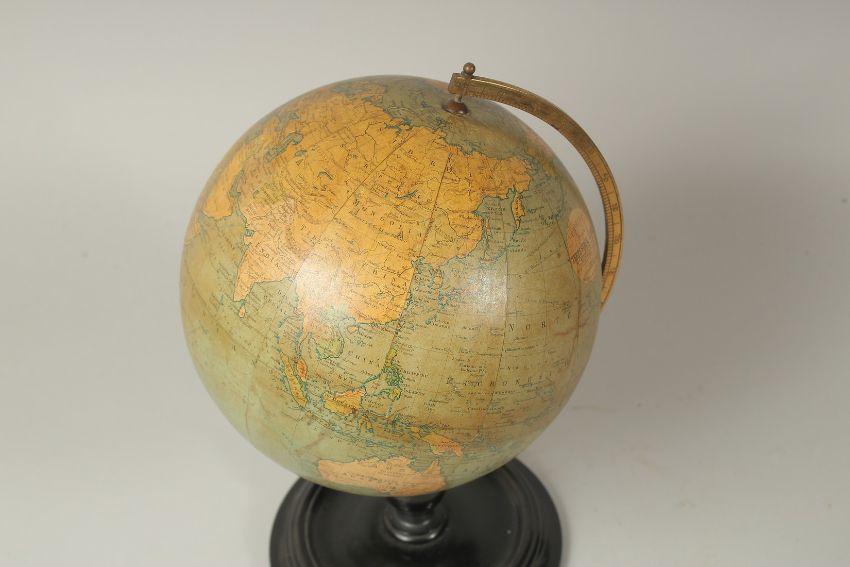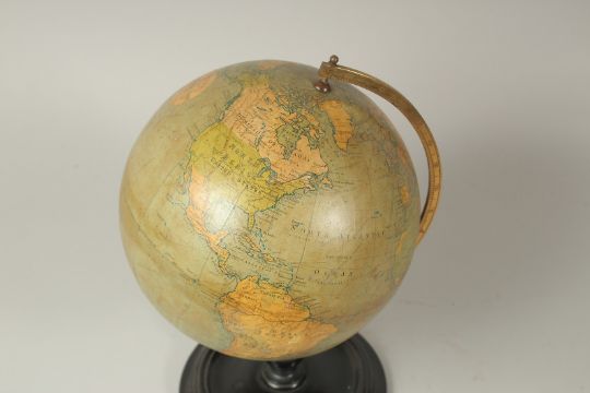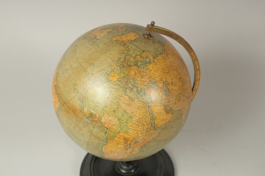 A PHILIP'S 9 INCH TERRESTRIAL GLOBE, on a circular base.