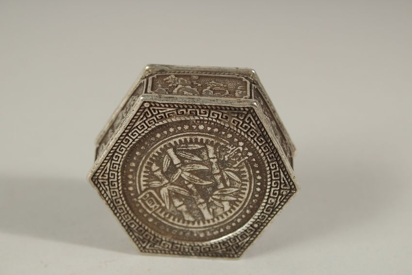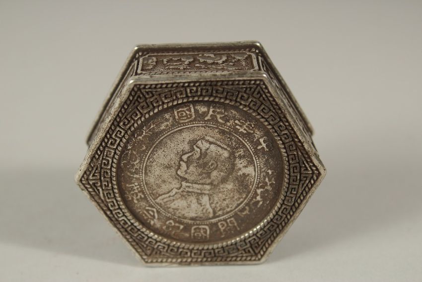 A CHINESE HEXAGONAL COIN BOX.