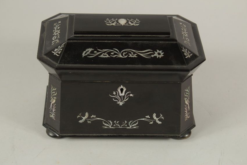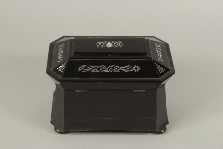 A REGENCY ROSEWOOD AND MOTHER-OF-PEARL TWO DIVISION TEA CADDY.