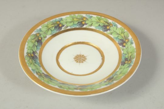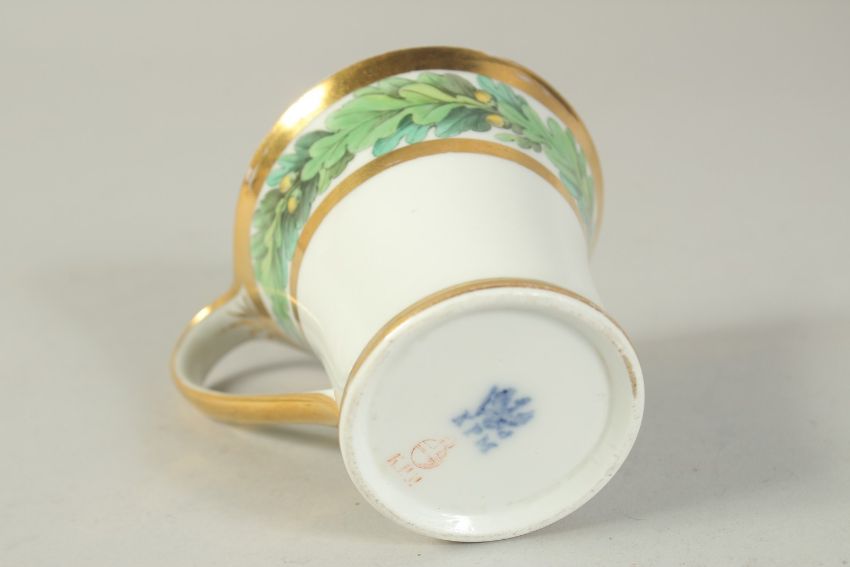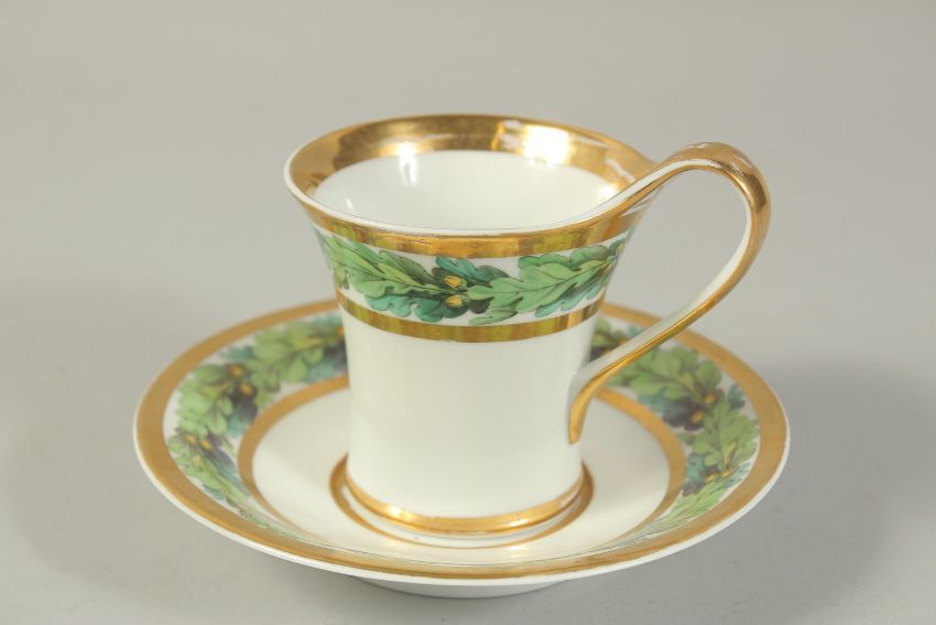 A BERLIN CUP AND SAUCER with oak decoration. Circa. 1845.