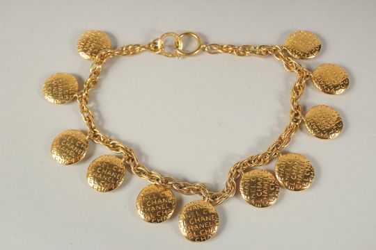 A MATCHING CHANEL GILT NECKLACE with ten pendants.