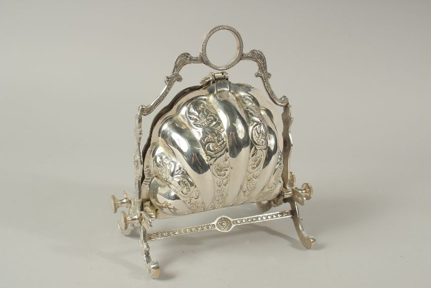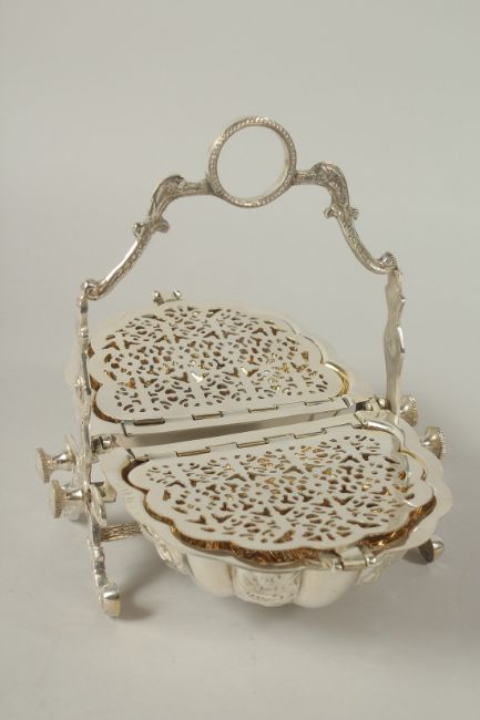 A SILVER PLATED CHEESE AND BISCUIT STAND.