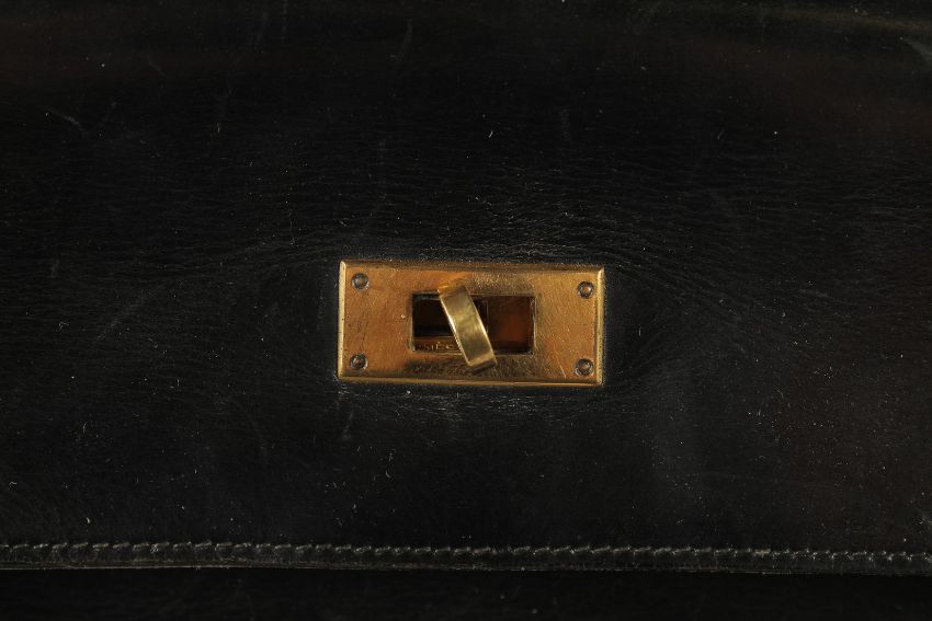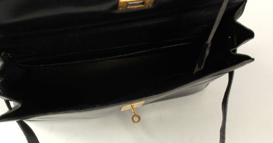A VERY GOOD VINTAGE HERMES BLACK LEATHER BAG, 1963.