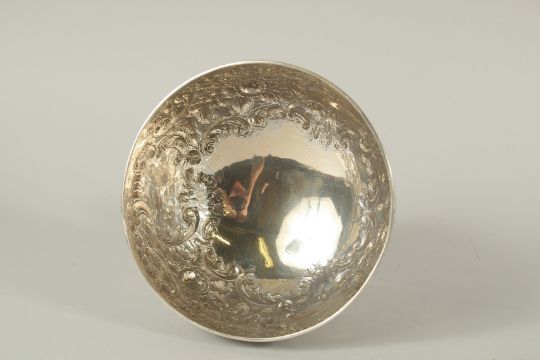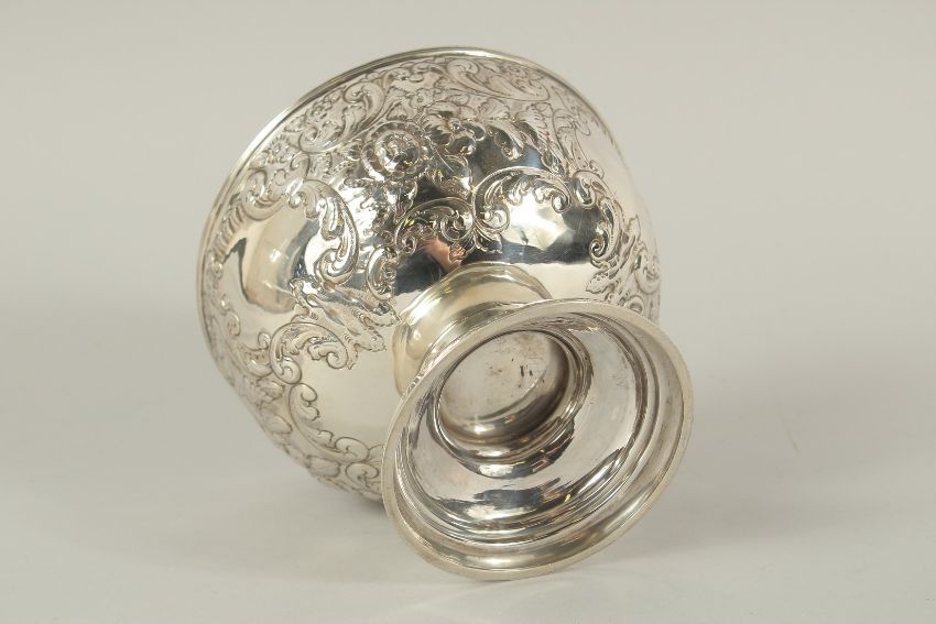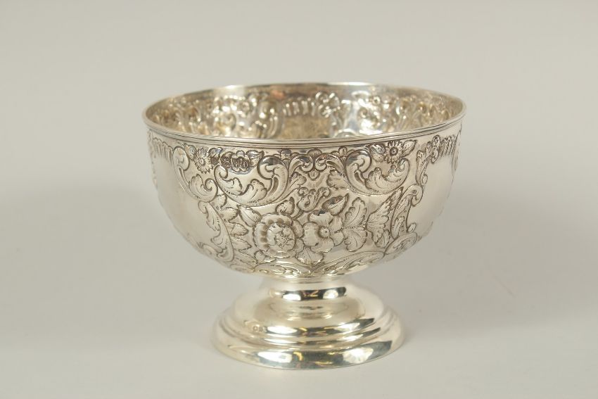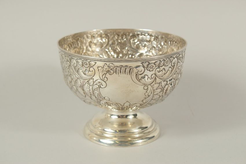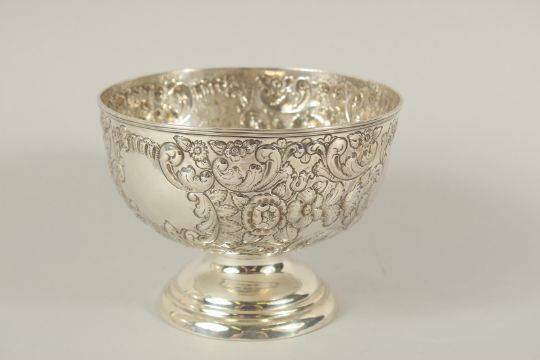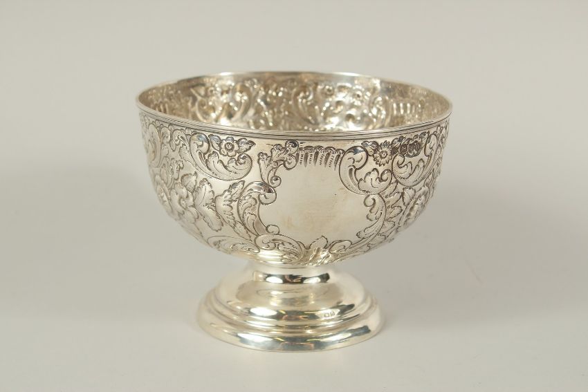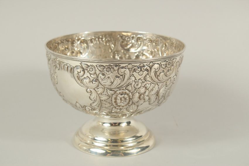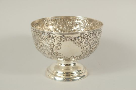 A VICTORIAN CIRCULAR ROSE BOWL with repousse decoration.