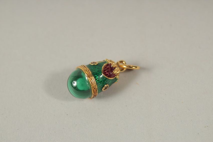 A RUSSIAN SILVER AND AGATE EGG PENDANT.