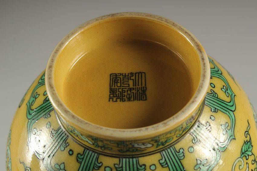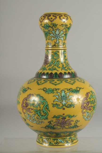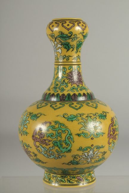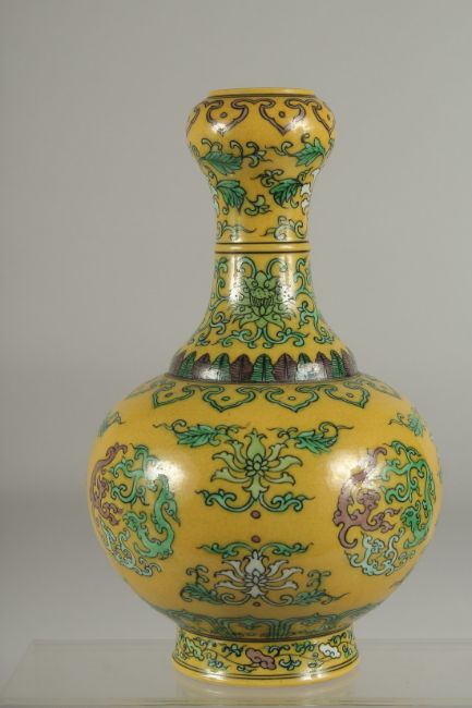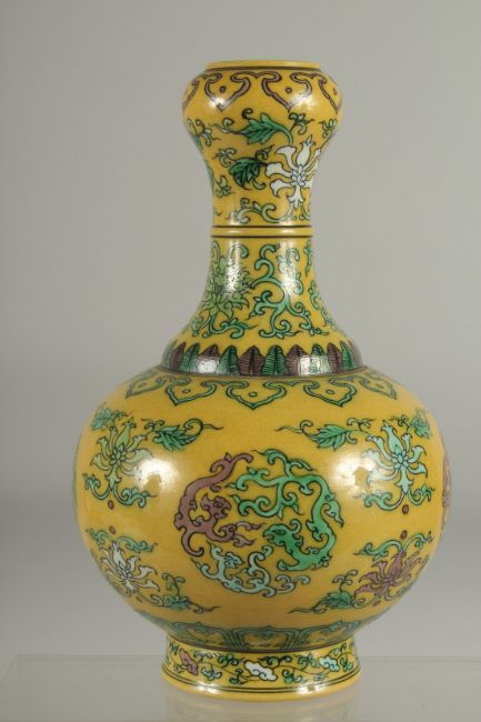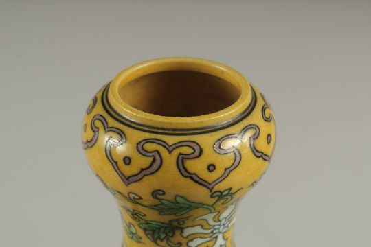 A CHINESE YELLOW GROUND PORCELAIN 'GARLIC HEAD' VASE, with character mark to base.