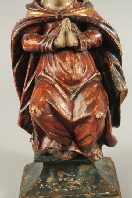 A FINE 17TH - 18TH CENTURY CARVING, A MAN PRAYING.