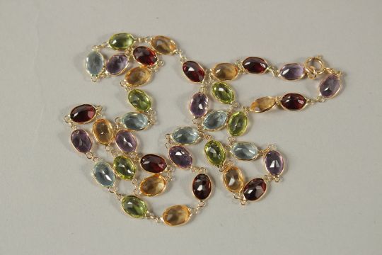 AN 18CT YELLOW GOLD MULTI-COLOUR GEM STONE NECKLACE. 18ins long.