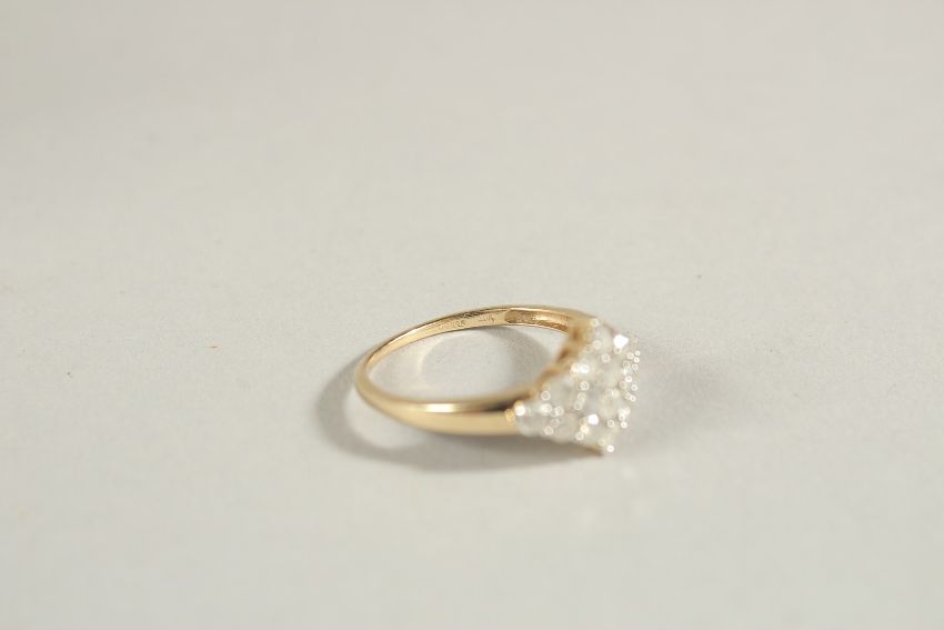 A 9CT YELLOW GOLD RHOMBOID RING SET WITH RBC DIAMONDS, boxed.