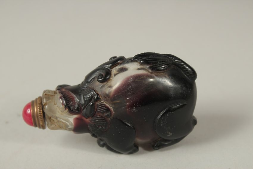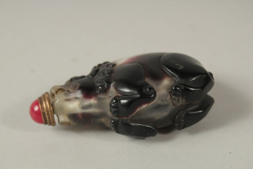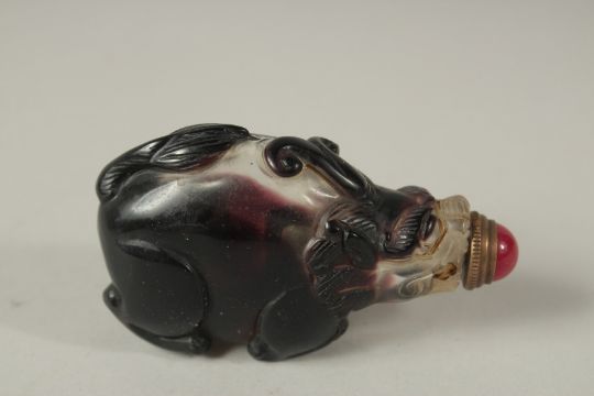 A CHINESE GLASS ANIMAL SNUFF BOTTLE AND STOPPER.