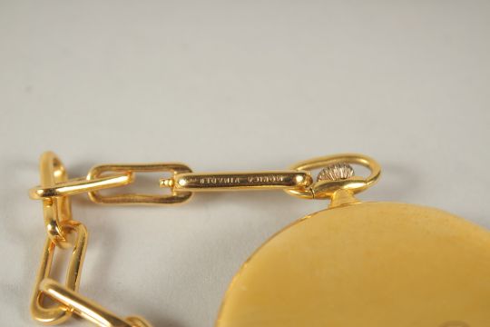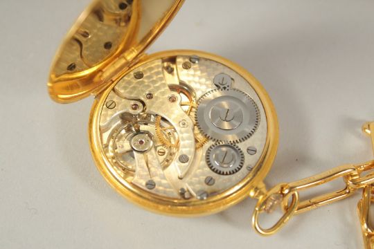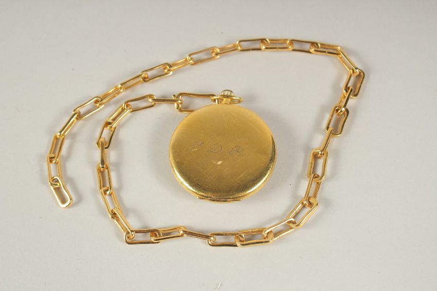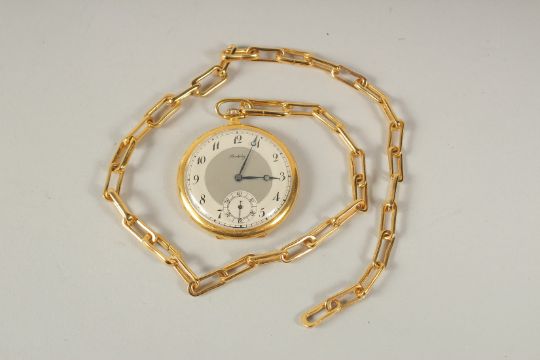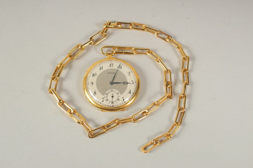 A BERKELEY GILT POCKET WATCH AND CHAIN.
