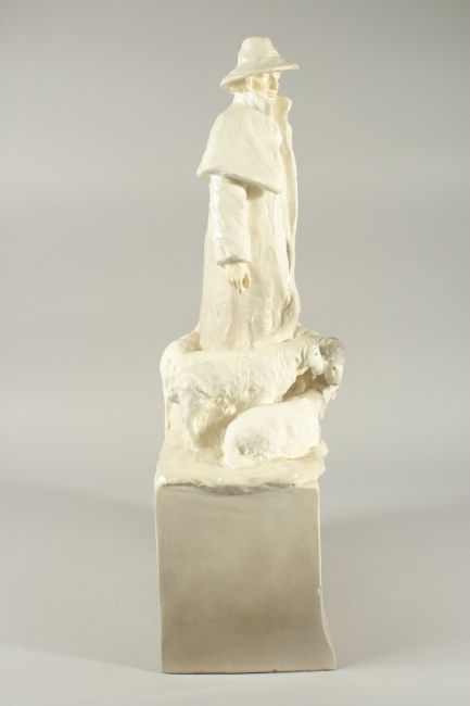 A LARGE WHITE POTTERY SHEPHERD AND SHEEP.