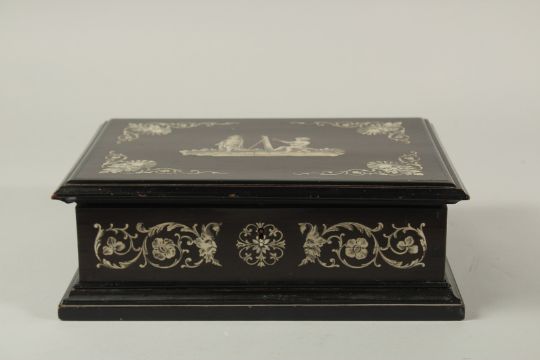 A 19TH CENTURY ITALIAN BONE INLAID BOX with classical designs.
