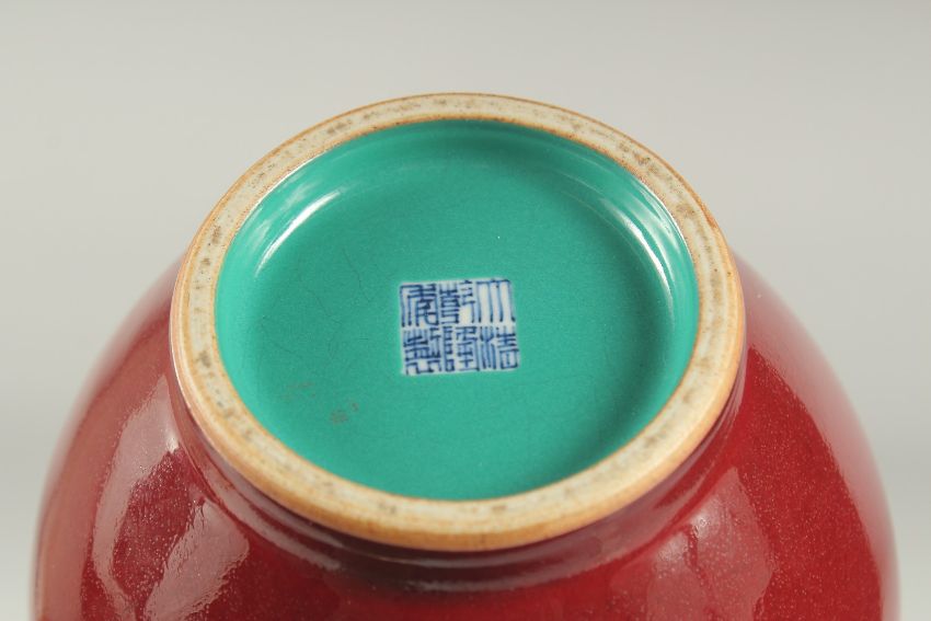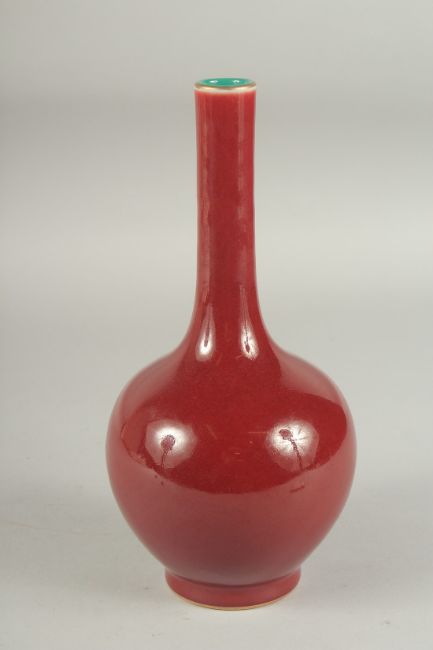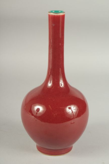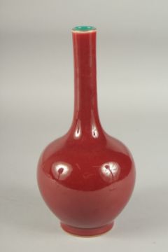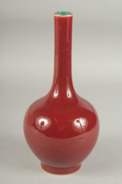 A CHINESE OXBLOOD GLAZE PORCELAIN BOTTLE VASE, the base with character mark.