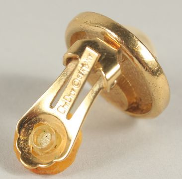 A PAIR OF CHRISTIAN DIOR GILT METAL AND PEARL EAR CLIPS and a CAT BROOCH.