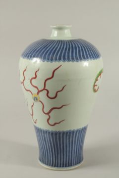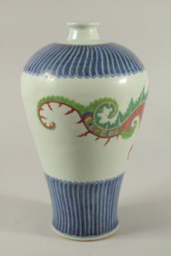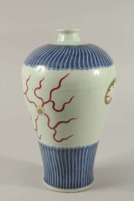 A CHINESE POLYCHROME PORCELAIN MEIPING VASE, with dragon and the flaming pearl of wisdom, 32cm high.