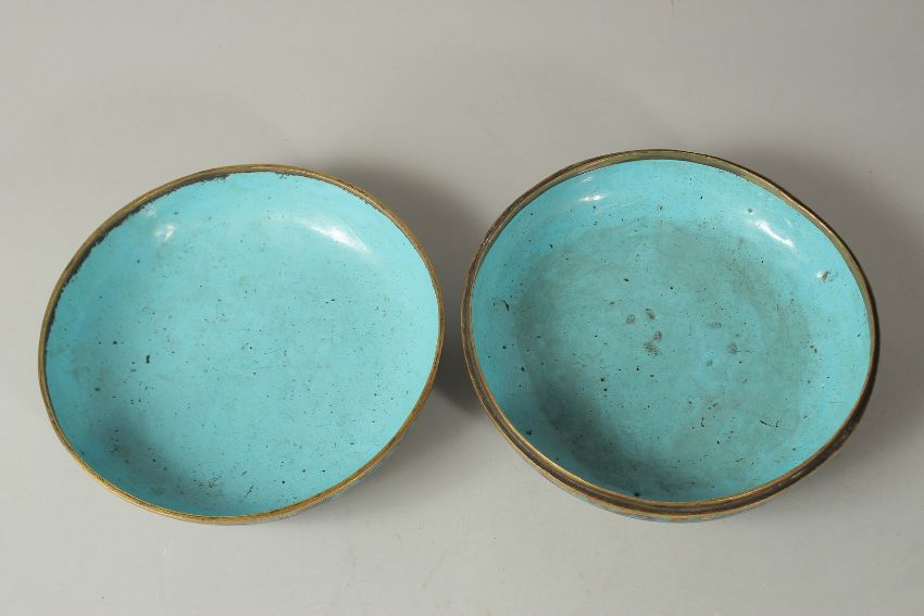 A 19TH CENTURY CHINESE BLUE GROUND CLOISONNE CIRCULAR LIDDED BOX, with floral motif decoration, 20.5cm diameter.