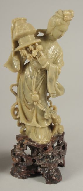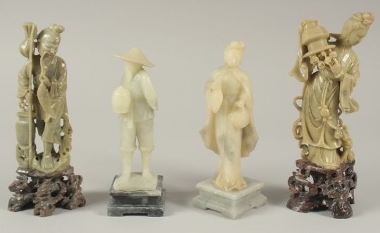 A COLLECTION OF FOUR CHINESE CARVED SOAPSTONE FIGURES, (4).