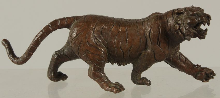 A BRONZE OKIMONO OF A TIGER, 15cm long.