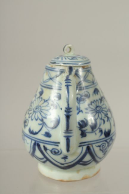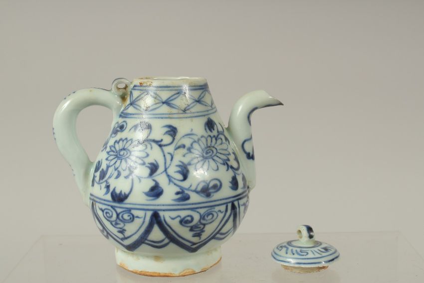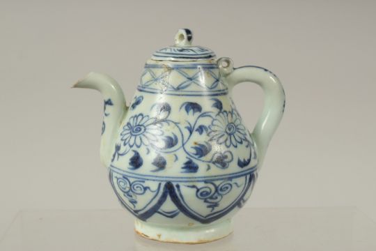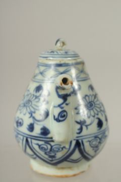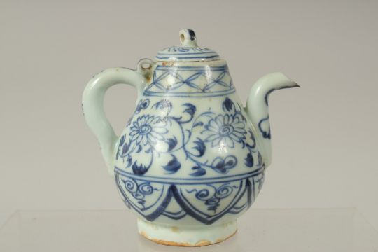A SMALL CHINESE BLUE AND WHITE PORCELAIN TEA POT, 10.5cm high.