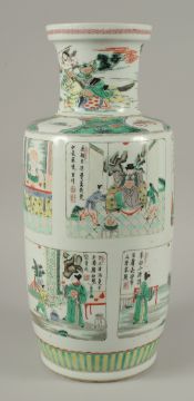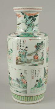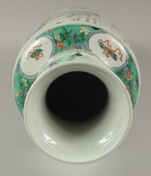 A LARGE CHINESE FAMILLE VERTE PORCELAIN VASE, painted with panels of various scenes with dignitaries, warriors on horseback, and other figures, the shoulder with precious objects, 47cm high.