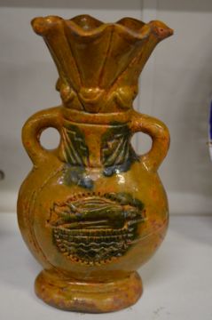 A Mexican style pottery twin handled vase.