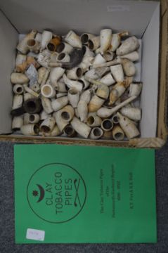 A collection of excavated clay pipes together with a clay pipe book.