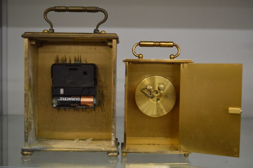A Garrard quartz carriage clock and another carriage clock.