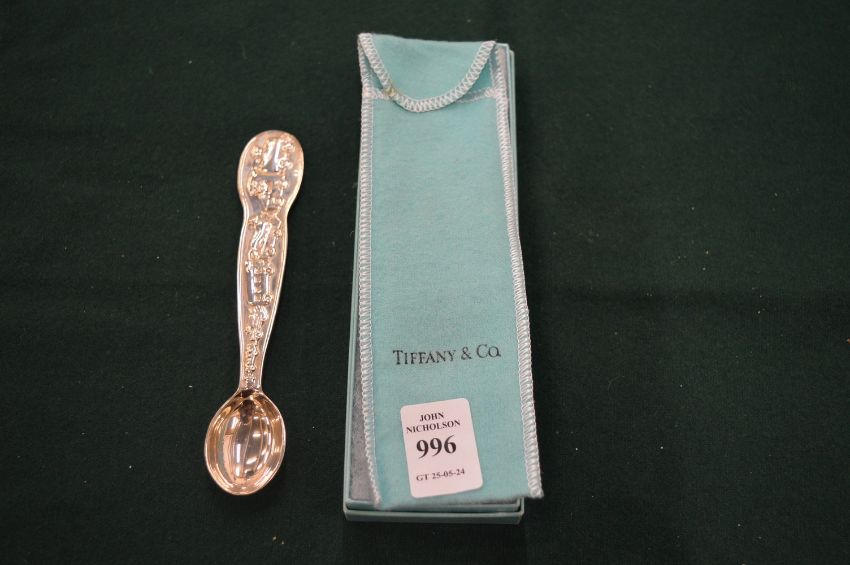 A Tiffany & Co Christening spoon with original pouch and box.