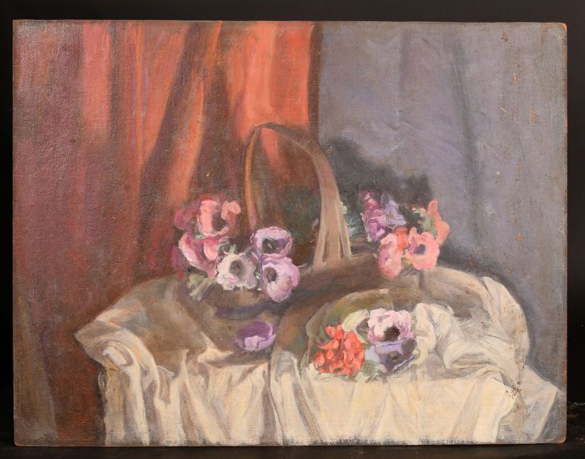 George Weissbort (1928-2013), a still life study of a basket of flowers, oil on canvas laid down, 18" x 24" (46 x 61cm), along with another still life, unframed, (2).
